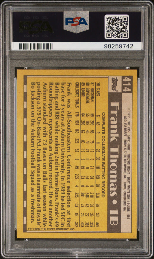 1990 Topps #414 Frank Thomas Name On Front PSA 9