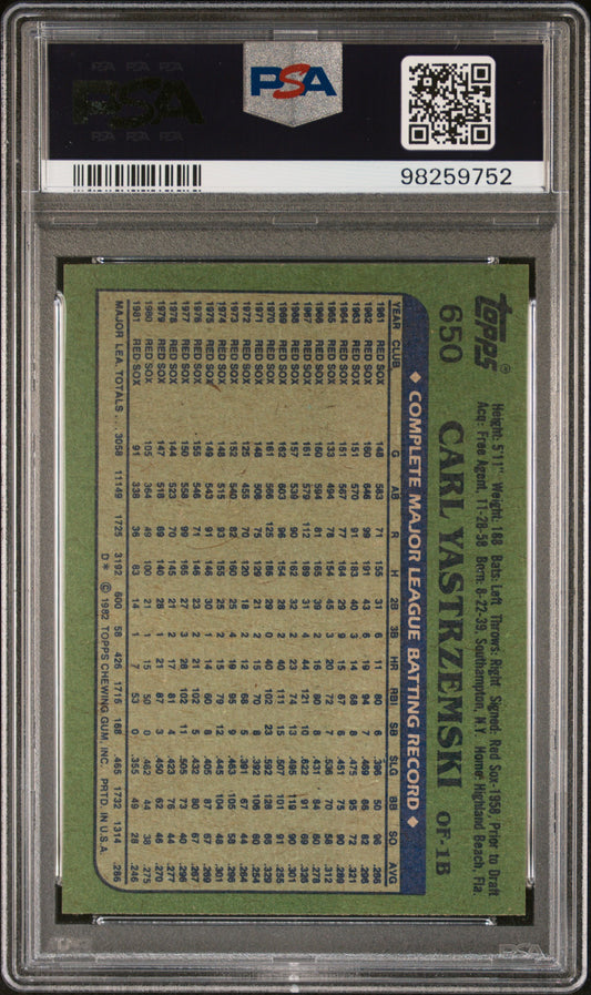 1982 Topps #650 Carl Yastrzemski PSA 8