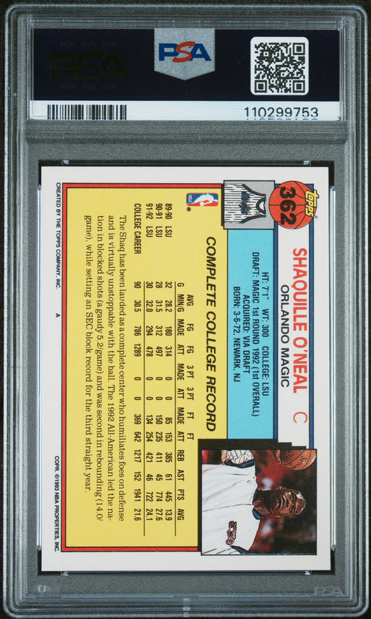 1992 Topps #362 Shaquille O'Neal PSA 9