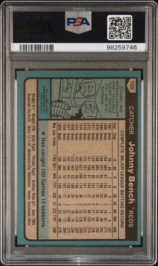 Sold out1980 Topps #100 Johnny Bench PSA 7