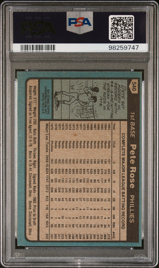 Sold out1980 Topps #540 Pete Rose PSA 8