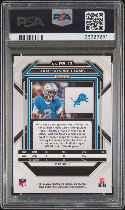 2022 Panini Prizm Black #PB13 Jameson Williams Prizm Black-Silver PSA 9