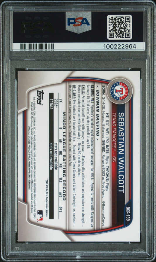 2023 Bowman Mega Box Chrome #189 Sebastian Walcott PSA 10