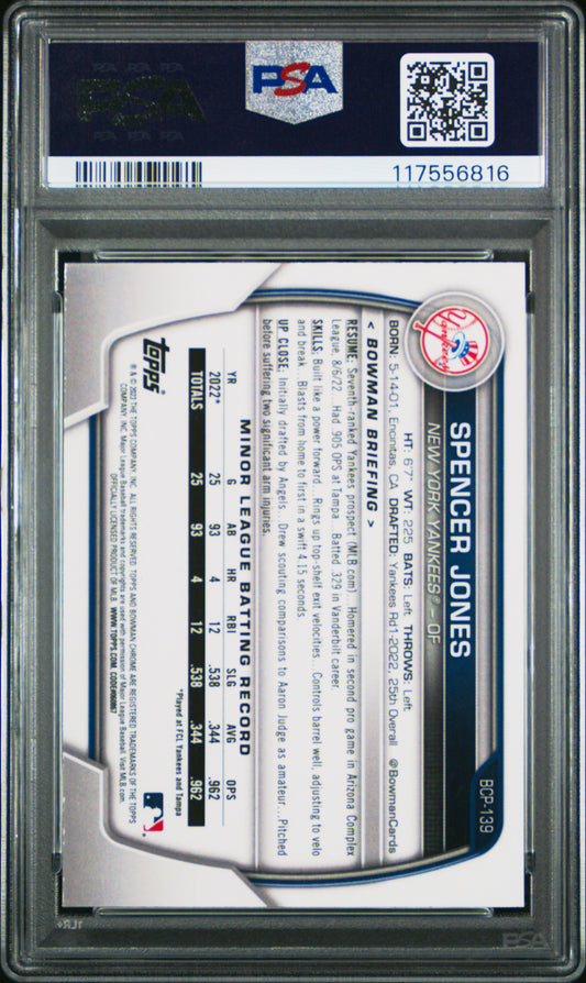 2023 Bowman Mega Box Chrome #139 Spencer Jones Chrome PSA 10