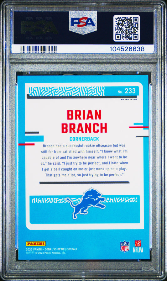 2023 Panini Donruss Optic #233 Brian Branch Holo PSA 10