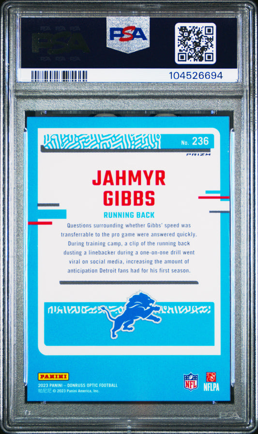 2023 Panini Donruss Optic #236 Jahmyr Gibbs Holo PSA 9