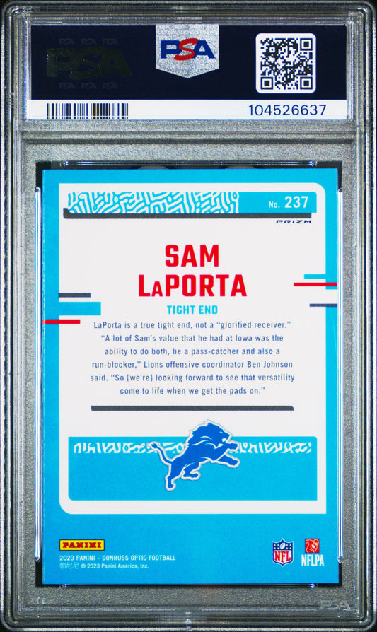 2023 Panini Donruss Optic #237 Sam Laporta Purple Shock PSA 10 SKU115