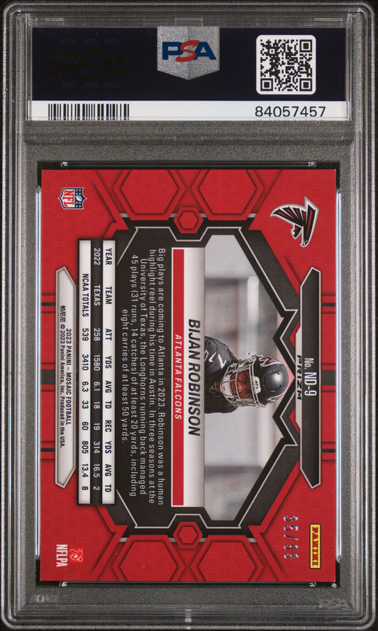 2023 Panini Mosaic Nfl Debut #ND9 Bijan Robinson Nfl Debut-Blue PSA 10