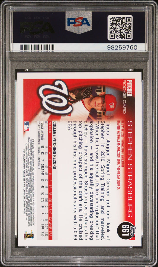 2010 Topps #661 Stephen Strasburg Factory Set PSA 10