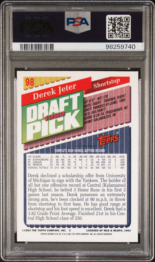 2001 Topps Archives Future Rookie Reprint #6 Derek Jeter Gld.Brdr. PSA 8