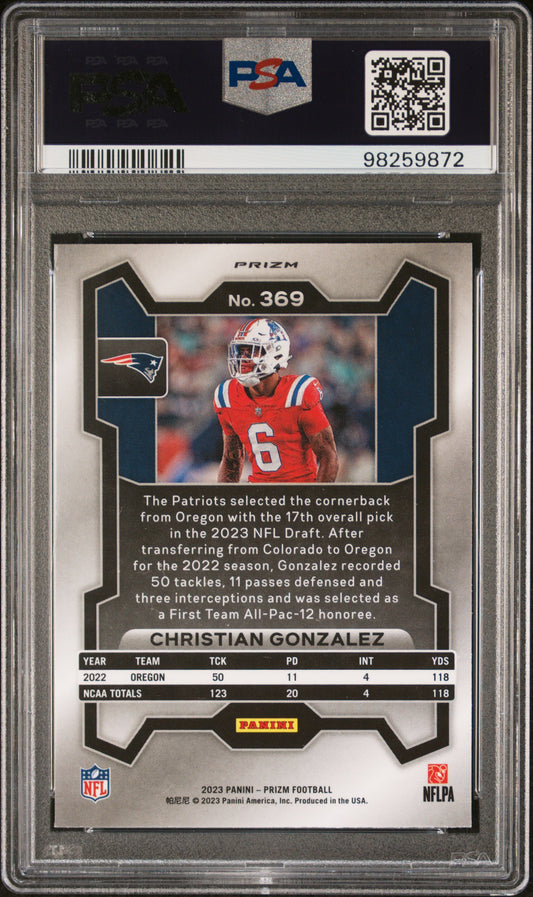 2023 Panini Prizm #369 Christian Gonzalez Silver Prizm PSA 9