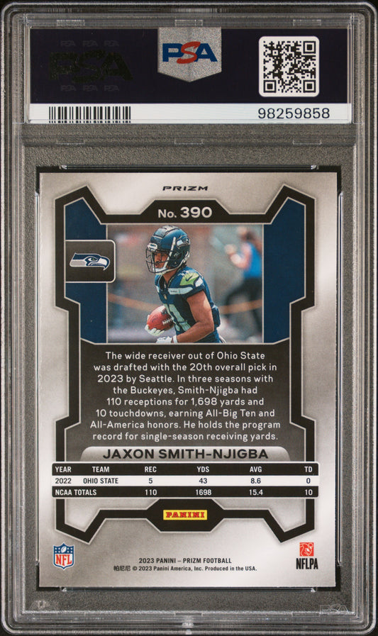 2023 Panini Prizm #390 Jaxon Smith-Njigba Lazer Prizm PSA 10