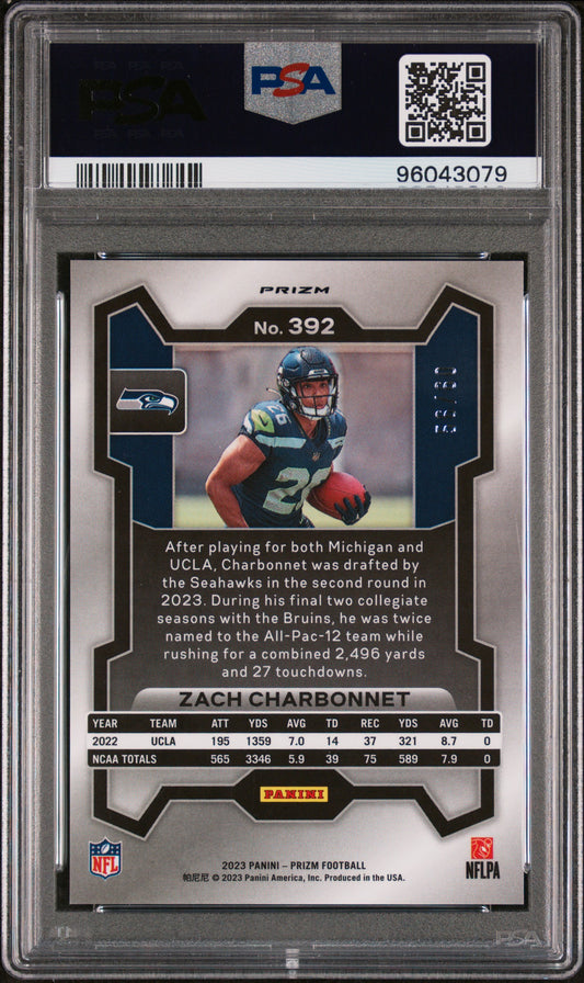 2023 Panini Prizm #392 Zach Charbonnet Orange Wave PSA 10