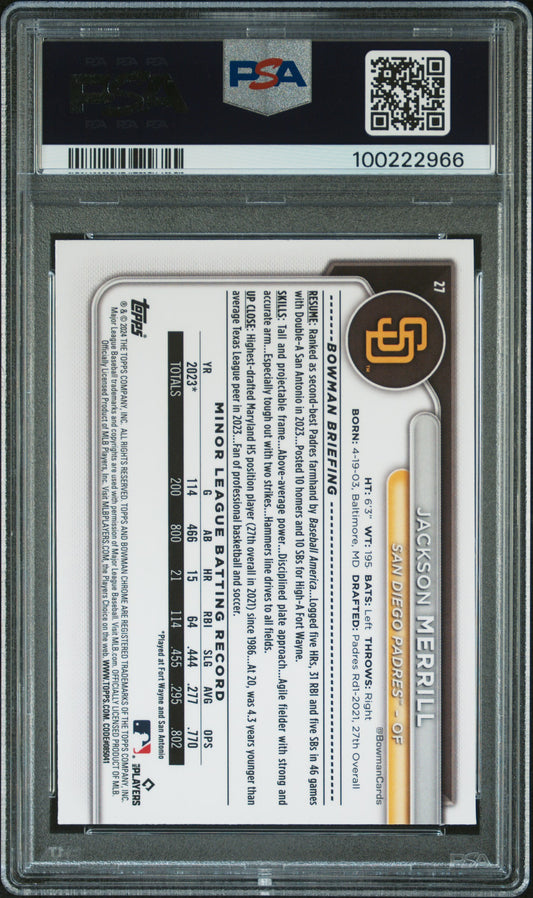 2024 Bowman Chrome #27 Jackson Merrill PSA 10