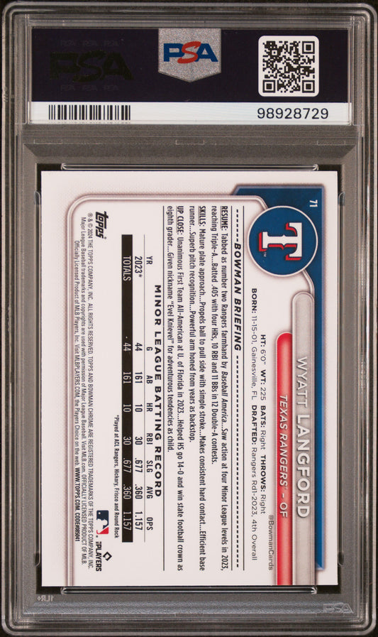 2024 Bowman Chrome #71 Wyatt Langford PSA 10