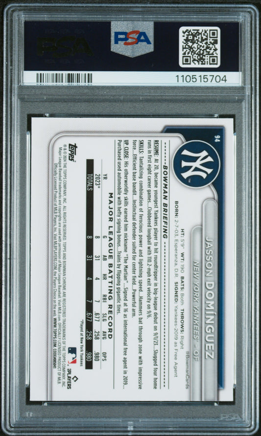 2024 Bowman Chrome #94 Jasson Dominguez Aqua Raywave PSA 9