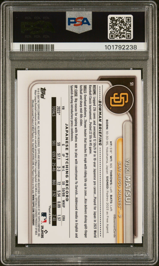 2024 Bowman Chrome #51 Yuki Matsui Wave Refractor PSA 9