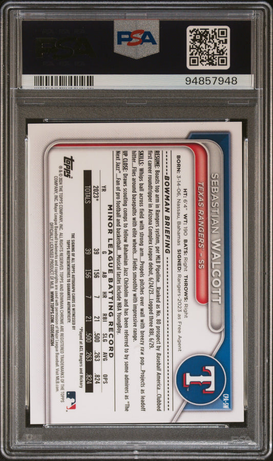2024 Bowman Chrome Prospect Autographs #CPASW Sebastian Walcott PSA 10