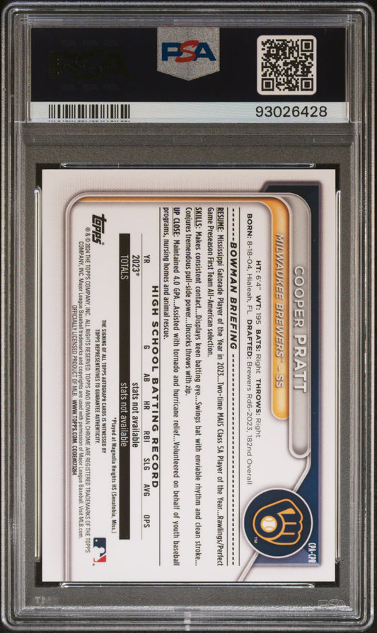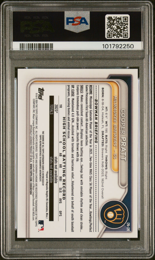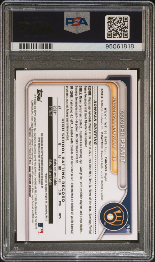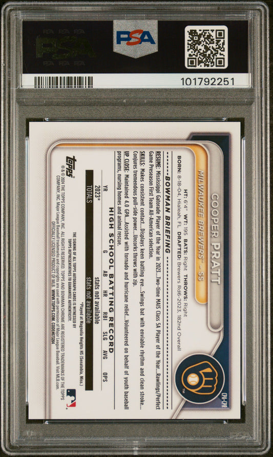 2024 Bowman Chrome Prospect Autographs #CPACPR Cooper Pratt PSA 10
