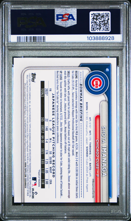 2024 Bowman Chrome Mega Box #41 Shota Imanaga Sp PSA 9