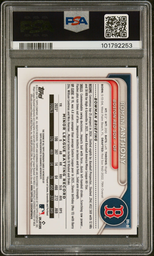 2024 Bowman Chrome Mega #RA Roman Anthony Chrome Autograph PSA 9