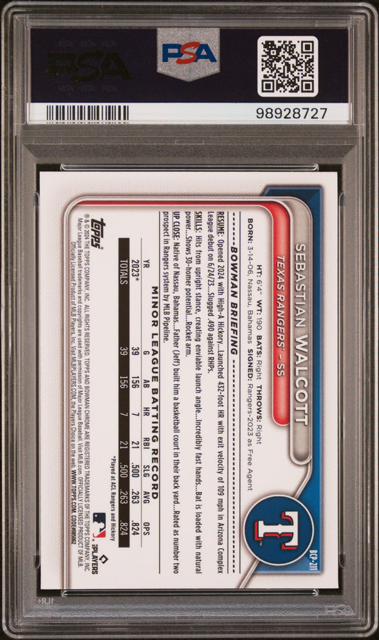 2024 Bowman Chrome Prospects #BCP81 Sebastian Walcott PSA 9 SKU200004