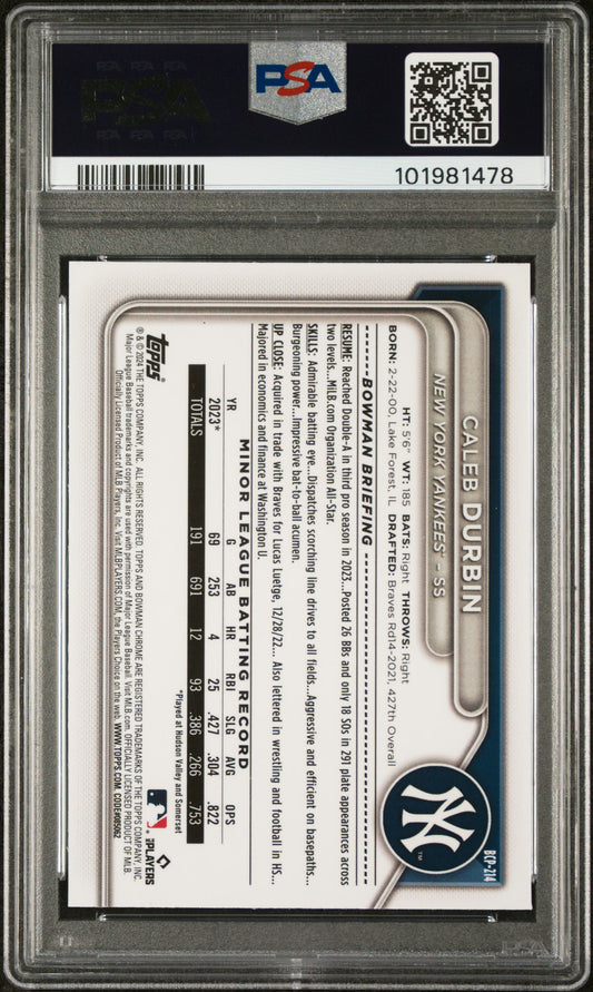 2024 Bowman Chrome Prospects #BCP214 Caleb Durbin Prospects-Speckle Ref PSA 10