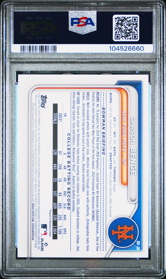 2024 Bowman Draft #BD28 Carson Benge PSA 10