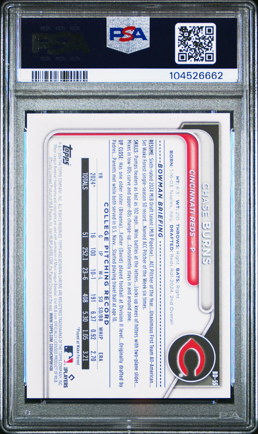 2024 Bowman Draft #BD55 Chase Burns PSA 10
