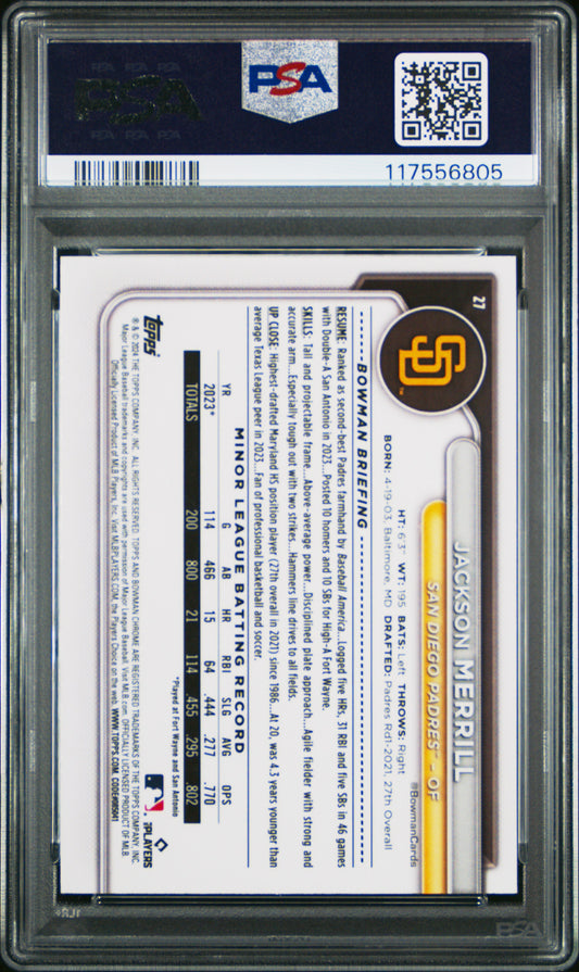 2024 Bowman Chrome Sapphire Edition #27 Jackson Merrill PSA 9