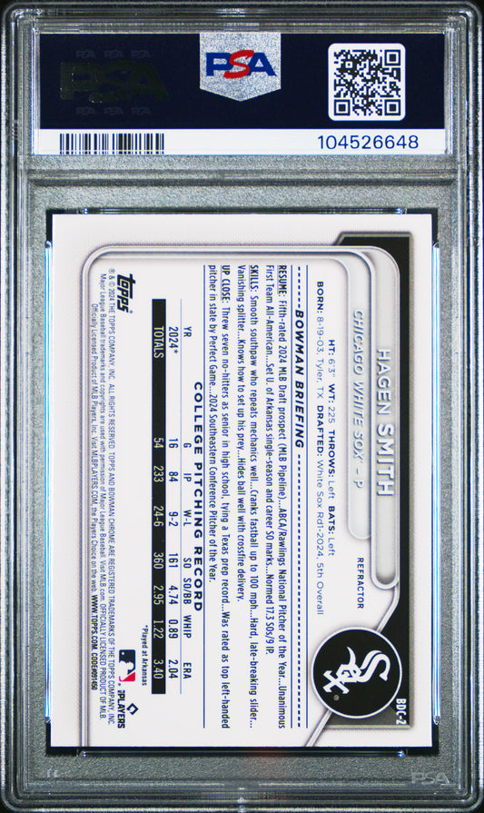 2024 Bowman Draft #BDC2 Hagen Smith Chrome-Refractor PSA 8