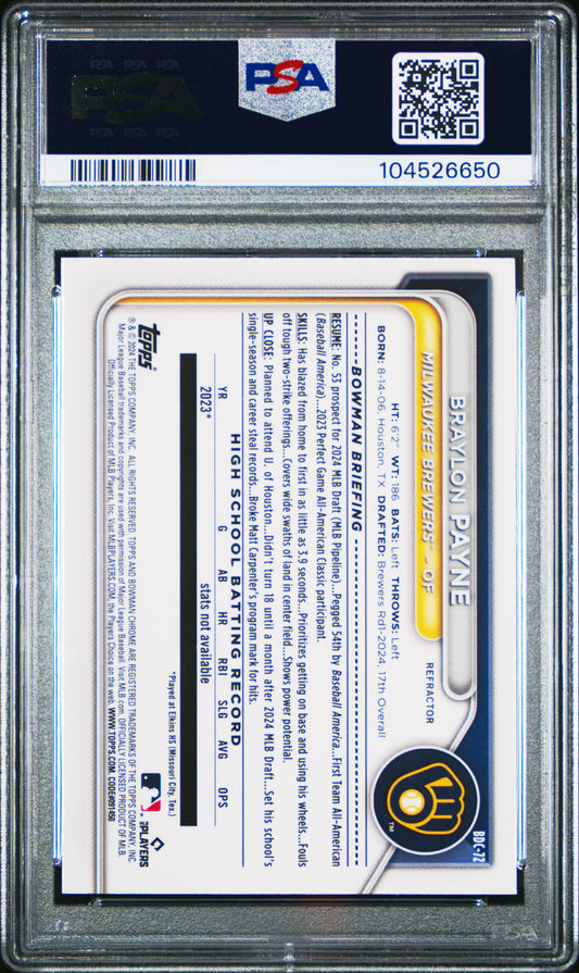 2024 Bowman Draft #BDC72 Braylon Payne Chrome-Refractor PSA 8