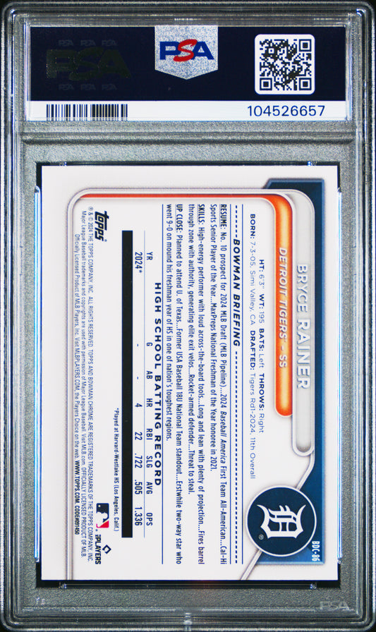 2024 Bowman Draft #BDC86 Bryce Rainer Chrome PSA 9