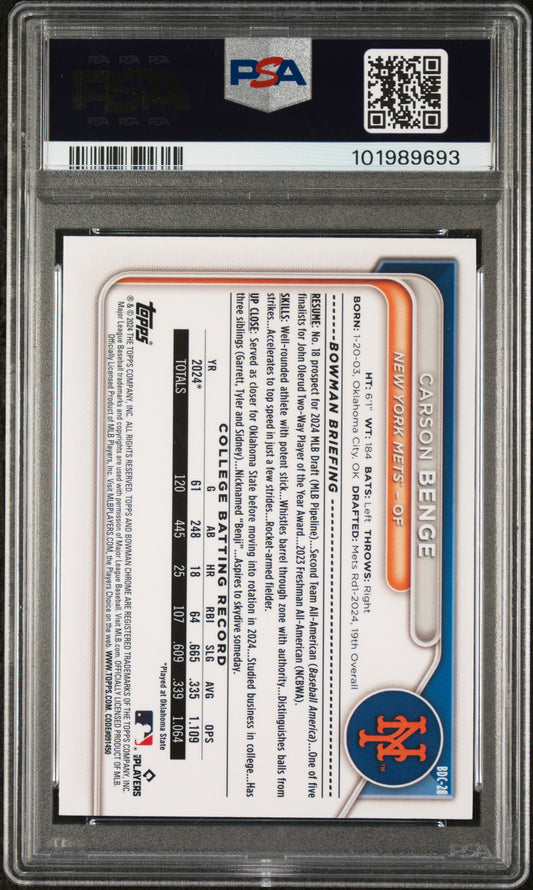 2024 Bowman Draft #BDC28 Carson Benge Chrome PSA 9