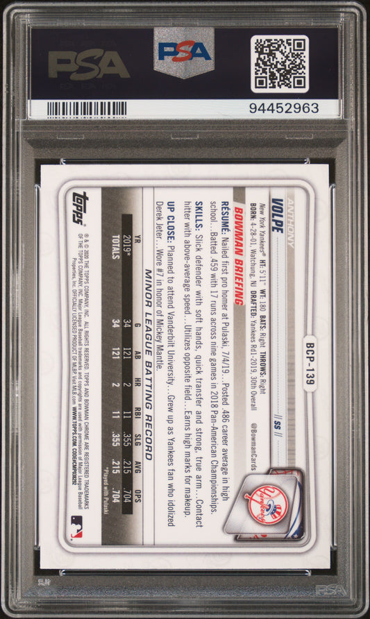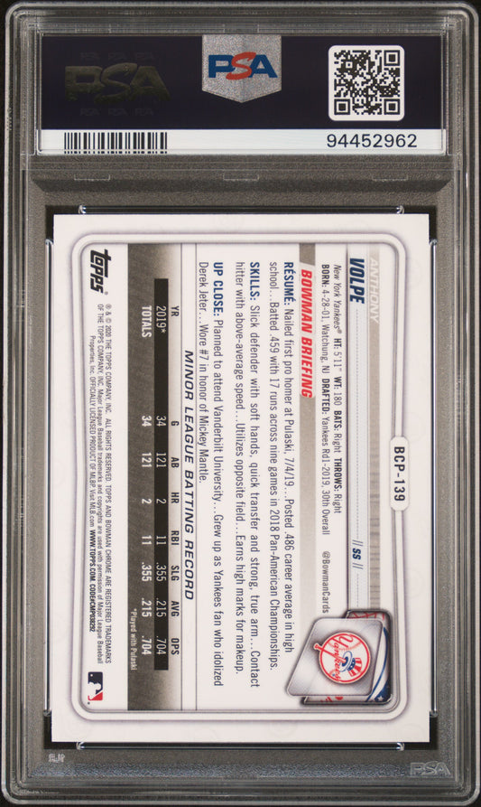 2020 Bowman Chrome Prospects #BCP139 Anthony Volpe Prospects PSA 10