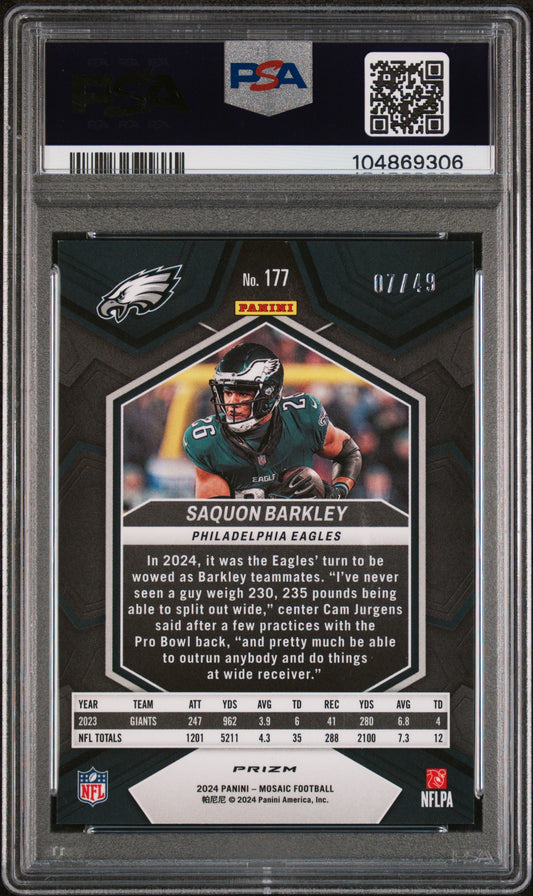 2024 Panini Mosaic #177 Saquon Barkley Purple PSA 9