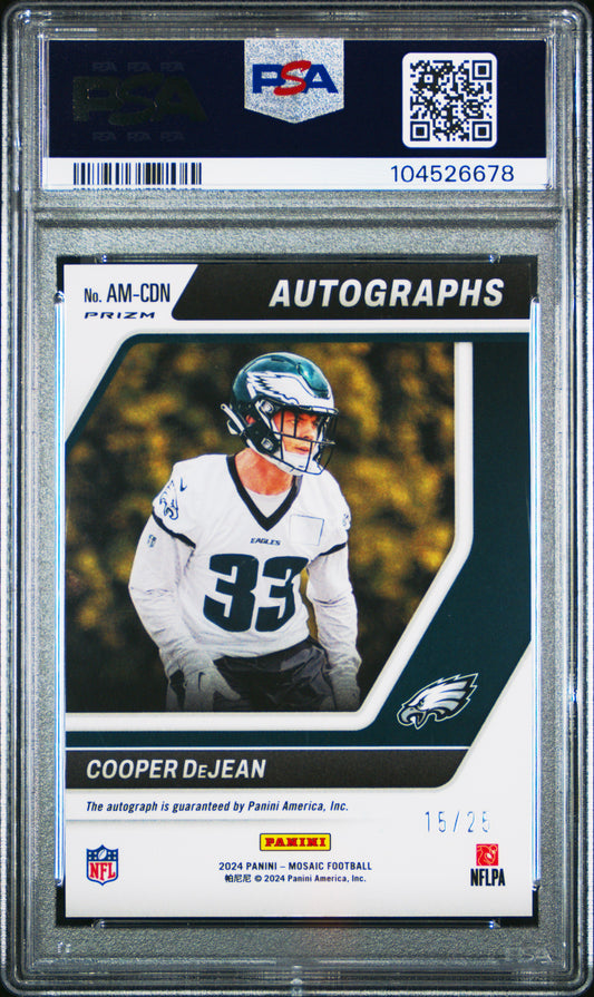 2024 Panini Mosaic Autographs Mosaic #AMCDN Cooper Dejean White/25 PSA 9