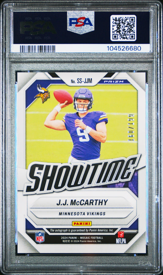 2024 Panini Mosaic Showtime Signatures #SSJJM JJ Mccarthy Red/199 PSA 10