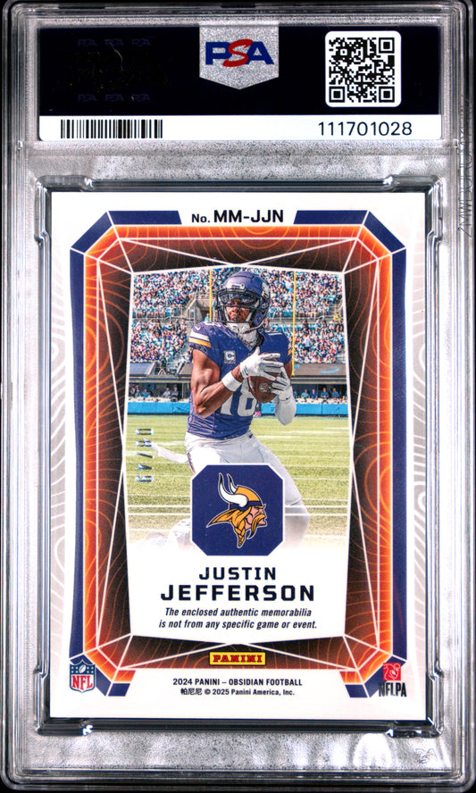 2024 Panini Obsidian Memorabilia #MMJJN Justin Jefferson-Purple/49 PSA 10