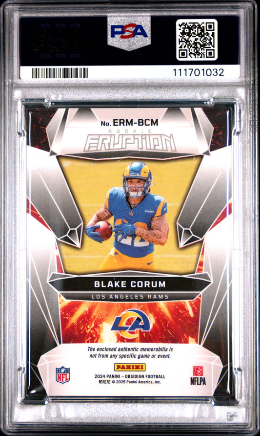 2024 Panini Obsidian Rookie Eruption Materials #ERMBCM Blake Corum PSA 9