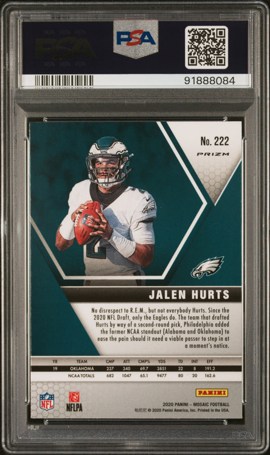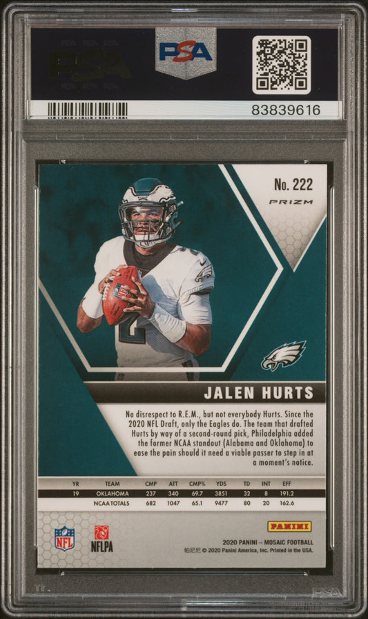 2020 Panini Mosaic #222 Jalen Hurts Red/Green Choice PSA 10