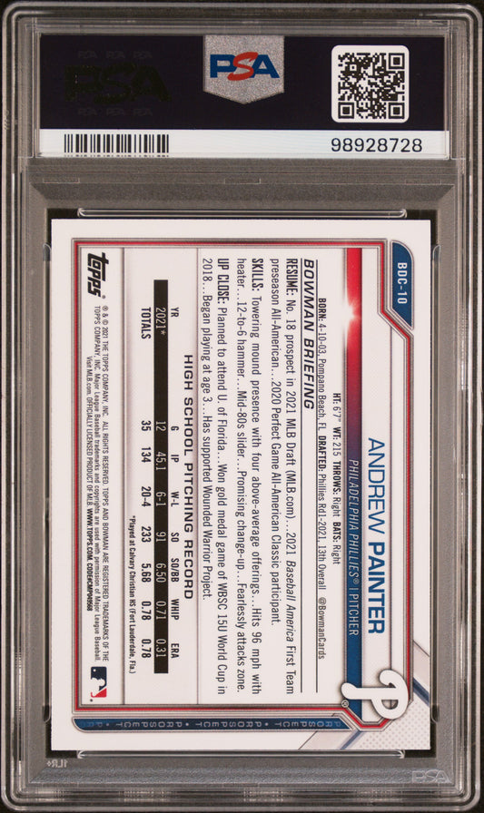 2021 Bowman Draft #BDC10 Andrew Painter Chrome-Refractor PSA 9