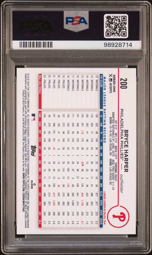 2024 Topps #200 Bryce Harper Asg Exclusive PSA 10