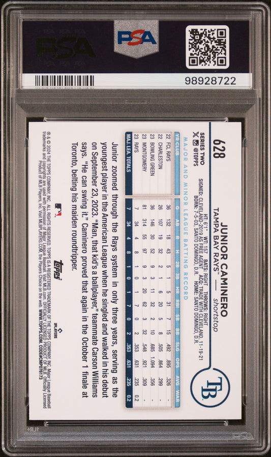 2024 Topps #628 Junior Caminero Purple Foil/799 PSA 10