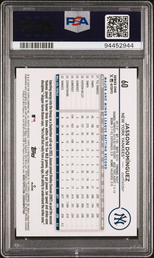 2024 Topps #60 Jasson Dominguez Rainbow Foil PSA 10