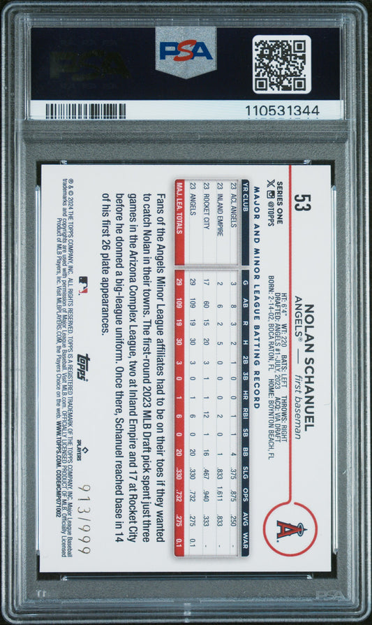 2024 Topps #53 Nolan Schanuel Blue Foil PSA 9