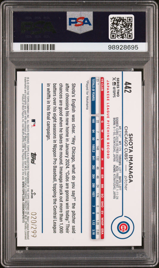 2024 Topps #442 Shota Imanaga Orange Crackle Foil Board PSA 10