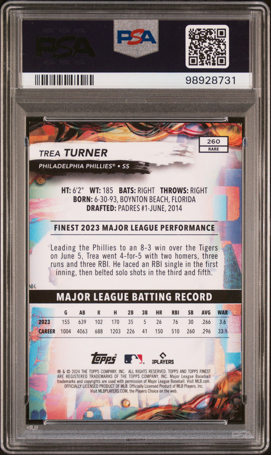 2024 Topps Finest #260 Trea Turner Sky Blue Refractor PSA 10