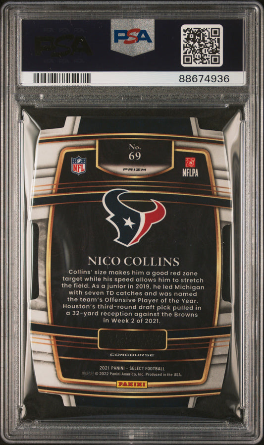 2021 Panini Select #69 Nico Collins D/C Red/Blue Prizm PSA 10
