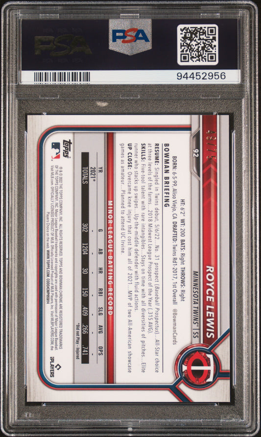2022 Bowman Chrome Sapphire Edition #92 Royce Lewis PSA 10